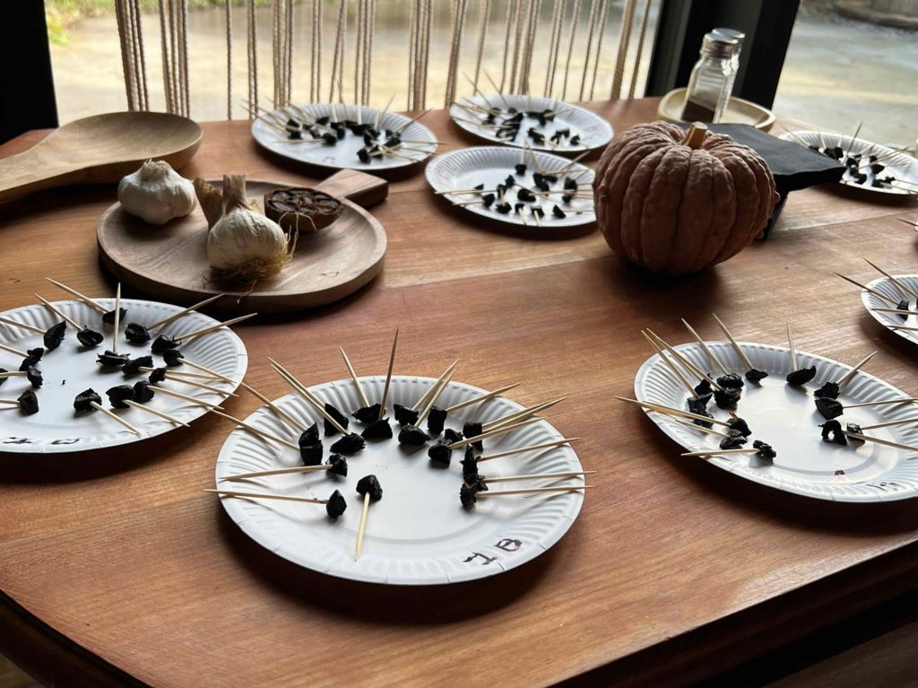 Les participants goûtent, comparent et identifient les différentes variétés d’ail noir.